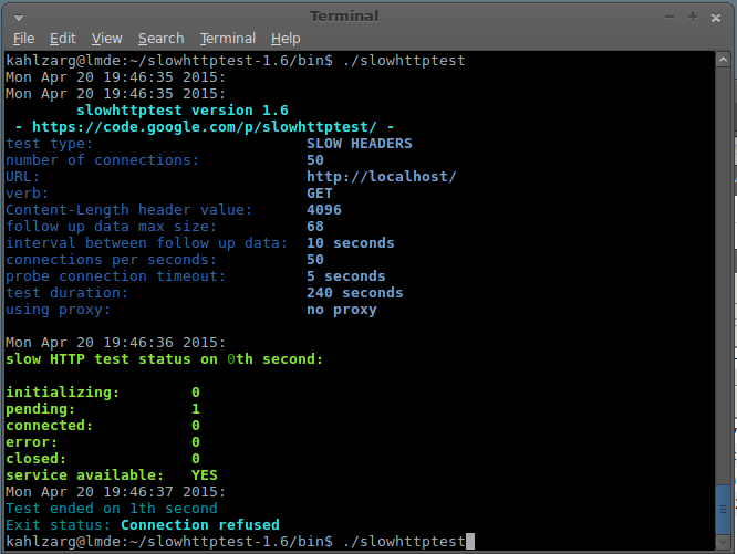 Shekyan also includes the syntax to launch an example of the SLOWORIS attach to test on your own servers.